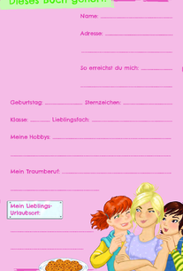 Gestalte dein ganz persönliches Freundebuch mit deinem Namen auf dem Titel! Außerdem kannst du eine individuelle Widmung eintragen – so bist du ganz nah dran an Kim, Franzi und Marie und fühlst dich wie das vierte Mitglied im Detektivclub.